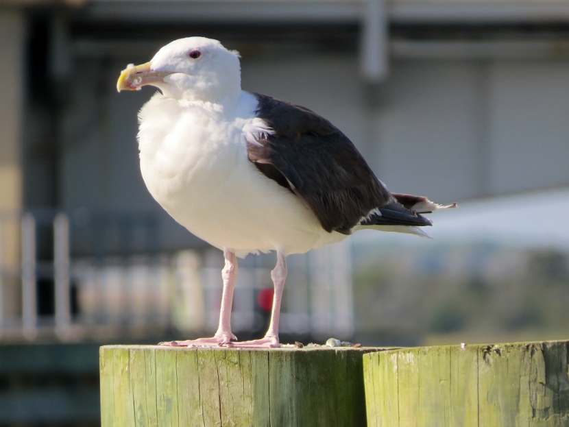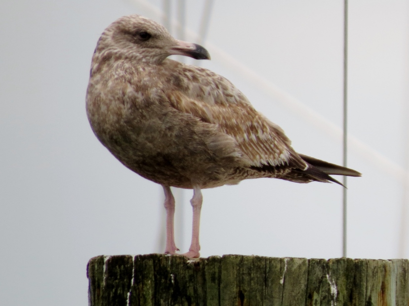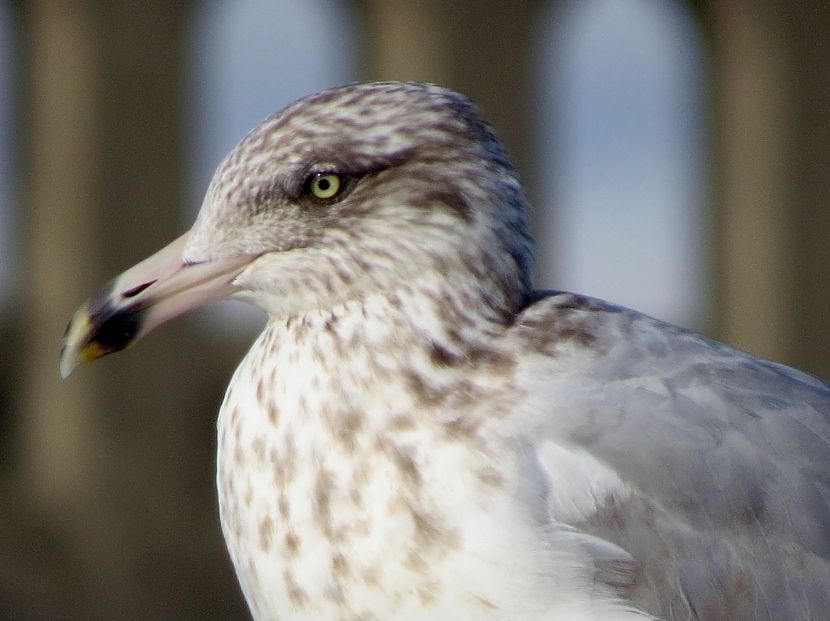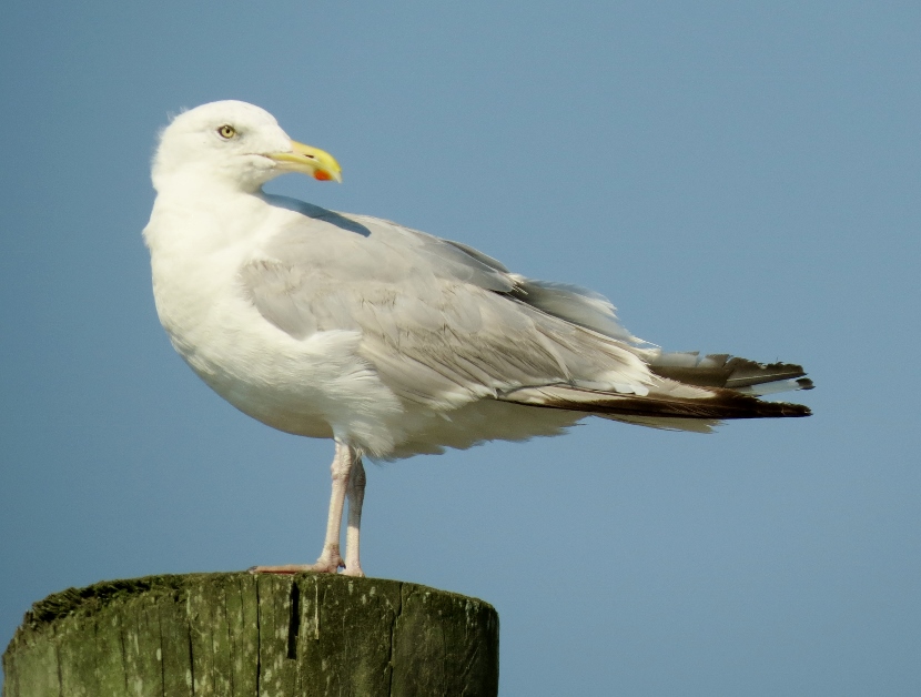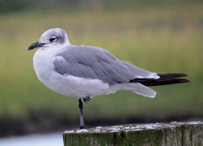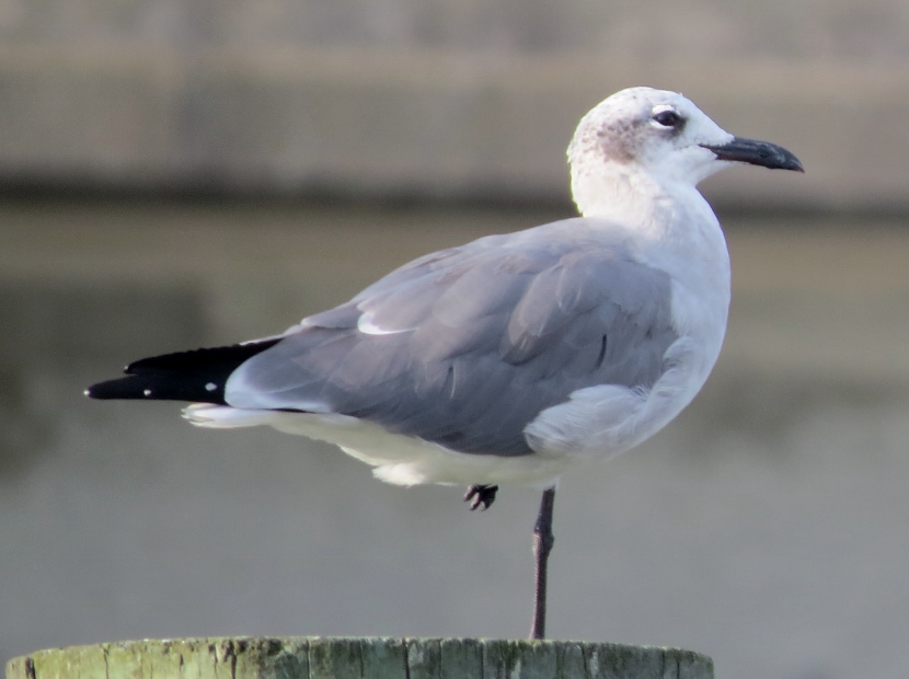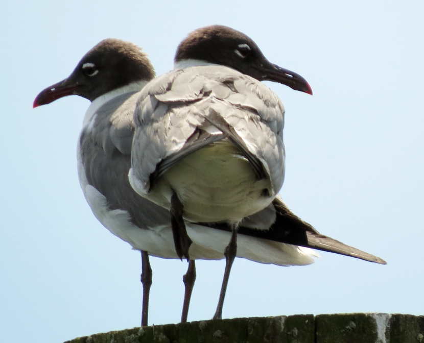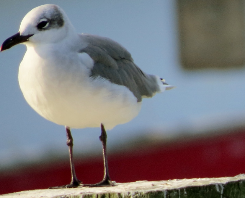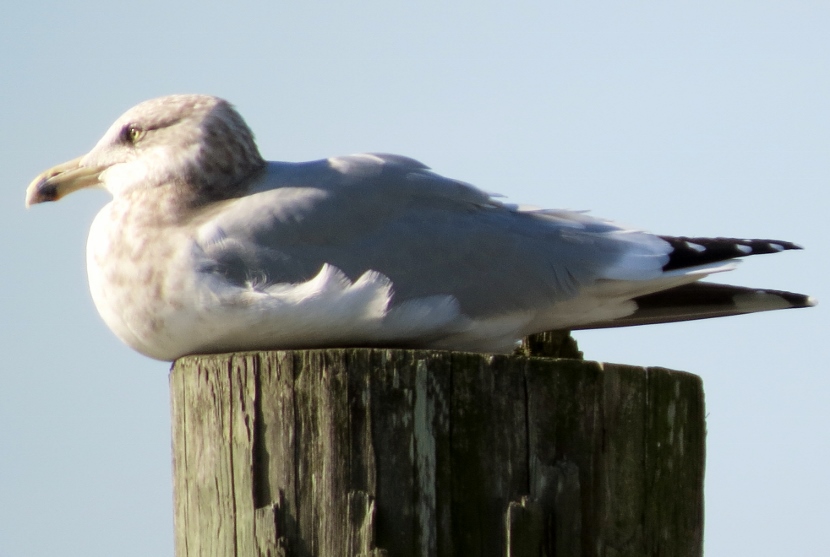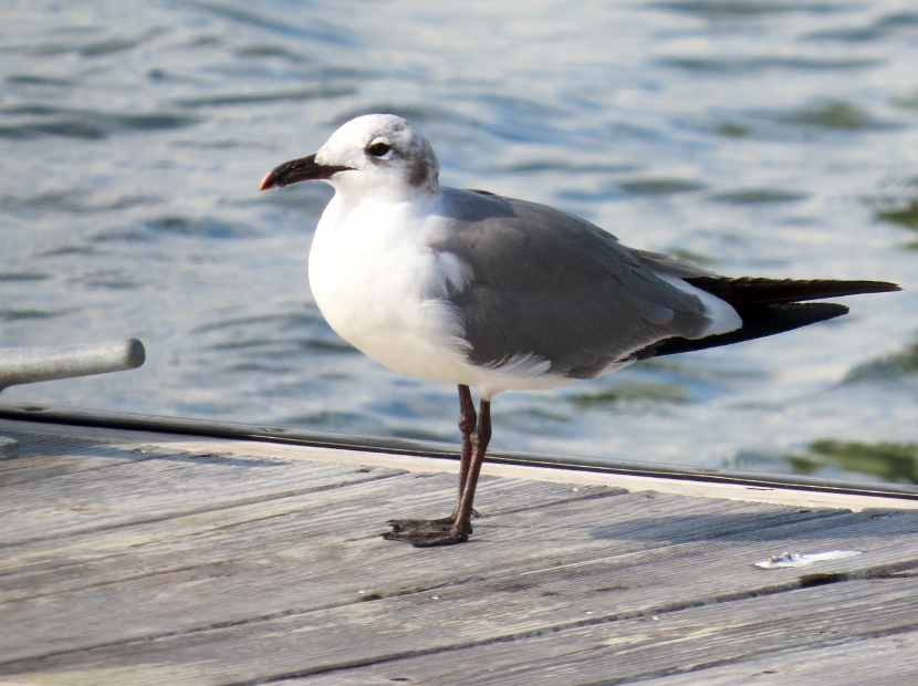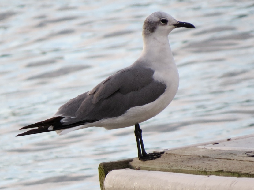 Waterfront Gulls Gulls coexist well with us humans, hanging around our parking lots, dumps, and waterfront docks, or chasing in the wake of fishing vessels to catch fish. They are adept whether in the air, floating on the water or walking on the beach. The Laughing Gull (Leucophaeus atricilla), known for its distinctive loud calls, has an obvious black hood on its head during the breeding season. In the following photographs, you can see how the hood fades away in the non-breeding parts of the years, from October through winter. The three other common gull species found in coastal North Carolina have white heads — Herring Gull, Ring-billed Gull, and Great Black-backed Gull. Here is the largest of the local gulls, the Herring Gull (Larus argentatus), marked by a distinct red spot on the bill. Juvenile Herring Gull The Ring-billed Gull (Larus delawarensis) is a gull of moderate size with a distinct dark area on the end of the bill. It changes during non-breeding season… Ring-Billed Gull, breeding plumage Ring-billed Gull, non-breeding plumage Waiting for Spring The Great Black-backed Gull (Larus fuscus) is large with a slate-colored back, much darker than the other gulls. To the sea, to the sea! The white gulls are crying; The wind is blowing, and the white foam is flying.J. R. R. Tolkien Here are posts on other waterbirds to visit: Coastal sun-bathers >>Double-crested Cormorant >>Winter loons and mergansers >> Please follow and like: Share this: Share on Facebook (Opens in new window) Facebook Share on X (Opens in new window) X Like this:Like Loading... Post navigation Winter Look-alikesFeathered graveyard visitors
