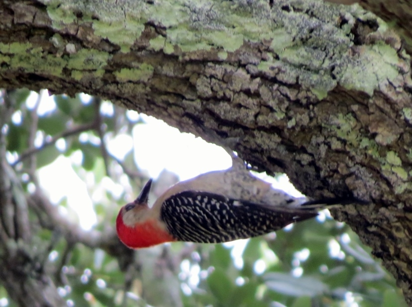 Visiting Woodpeckers stop by occasionally to forage for insects and grubs on the ancient trees inside the walls of the Old Burying Ground. They “eat and run” so to speak.