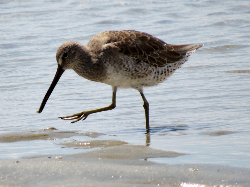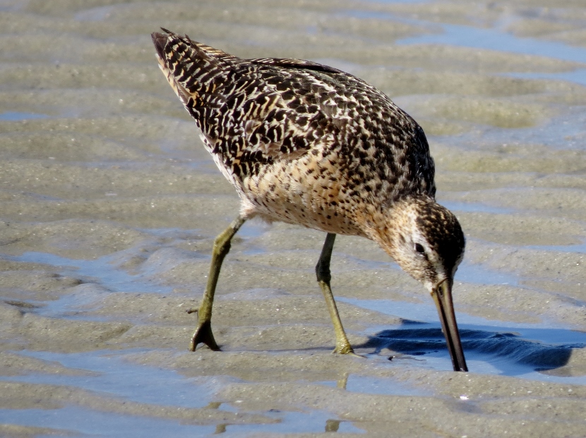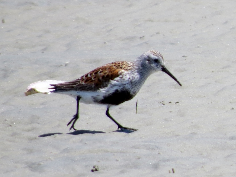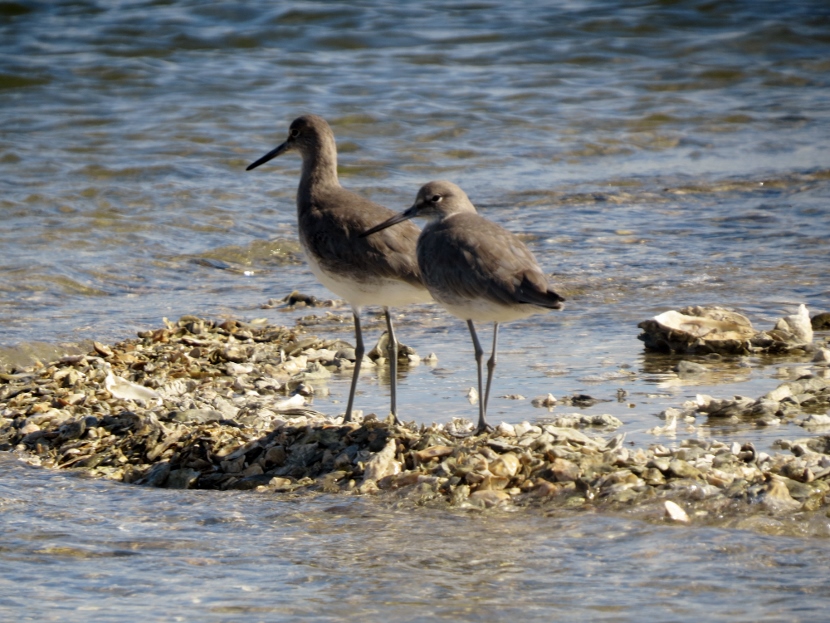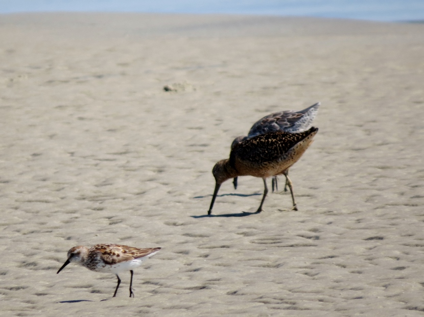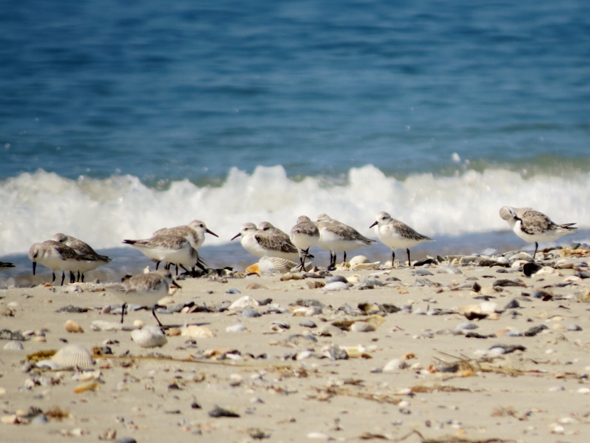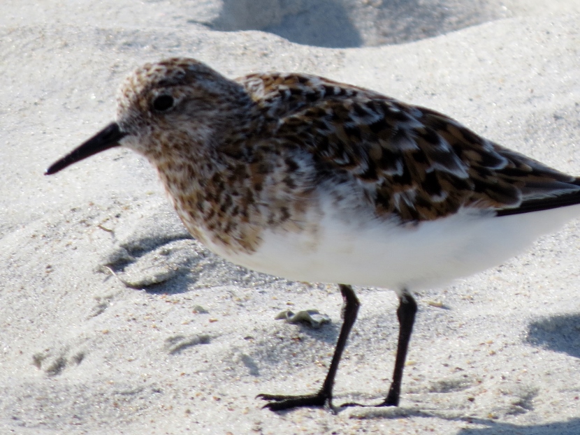 Sandpipers. Which is which? There are sandpipers everywhere around me on Bird Shoal, an uninhabited island across from town. I focus my camera on photographing one small enchanting bird that’s darting across the sand right in front of me. While out in the field, I snap lots of photographs. Now I need to attach a name to each bird. With sandpipers, that can be a challenge. Ask any experienced birder. It’s tough to distinguish the subtle differences between species. Small and medium sizes Flock of sandpipers Different species Although the variety of sandpipers and plovers shifts from season to season, there are at least three year-round residents: Willets, Sanderlings, and Piping Plovers. Many other species visit only during the fall or winter months, wearing their grayish non-breeding plumage, like these … Ruddy Turnstone Black-bellied Plover Killdeer Semi-palmated Sandpiper Semi-palmated Sandpiper Sanderling Killdeer Semi-palmated Sandpiper Black-bellied Plover Willet Willet Whimbrel Greater Yellowlegs Short-billed Dowitcher Greater Yellowlegs Marbled Godwit Short-billed Dowitcher Short-billed Dowitcher During the spring and summer months, the population of sandpipers and plovers changes, adding several other species. The birds are in full breeding plumage, which is more distinctly spotted or streaked. Long-billed Dowitcher Long-billed Dowitcher Willet Ruddy Turnstone (with calico back) Long-billed Dowitcher Least Sandpiper Least Sandpiper Semi-palmated Plover Black-bellied Plover Black-bellied Plover Long-billed Dowitcher Dunlin Sanderling Ruddy Turnstone Dunlin On a summer visit, I had the good fortune to encounter some plover chicks and juveniles… Piping Plover Chick Piping Plover Juvenile Wilson’s Plover Juvenile Semi-palmated Plover Juvenile Here are related bird posts to visit: Waterfront Gulls >>Winter Loons and Mergansers >> Please follow and like: Share this: Share on Facebook (Opens in new window) Facebook Share on X (Opens in new window) X Like this:Like Loading... Post navigation Birds Perched on GravestonesEncountering Young Green Herons