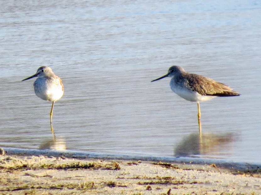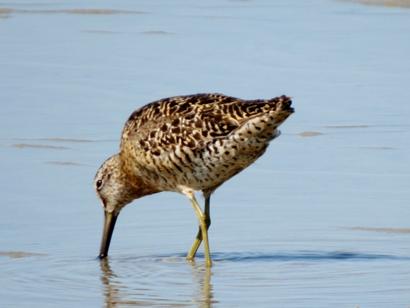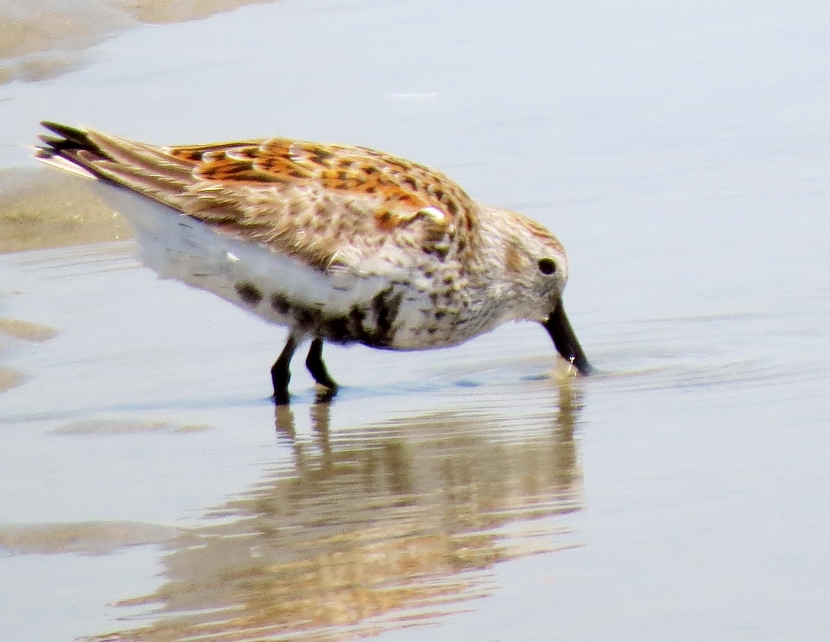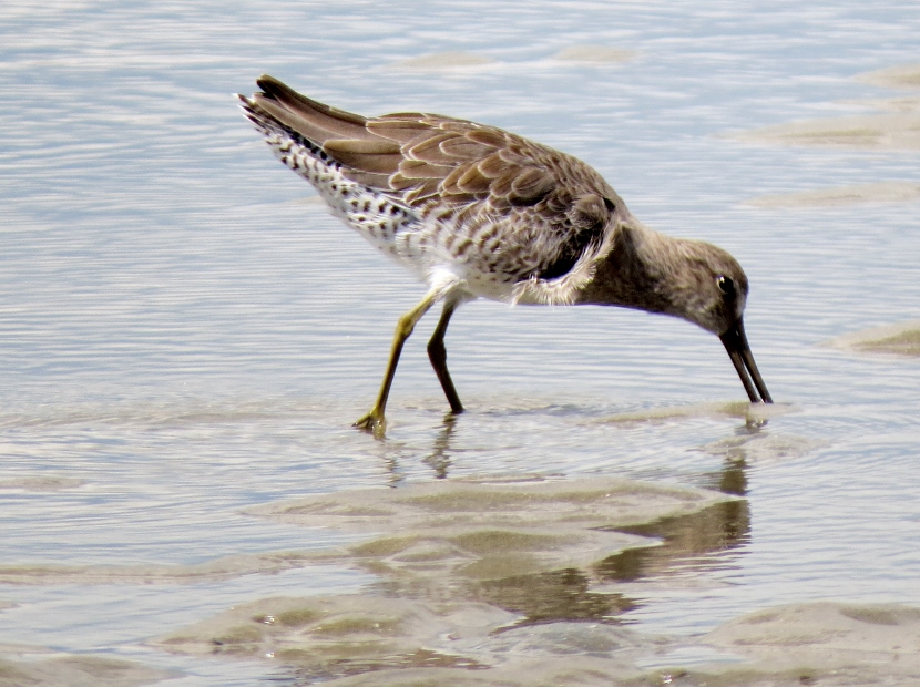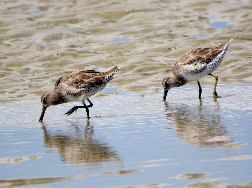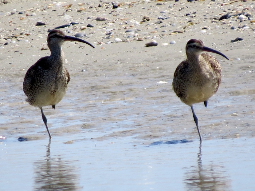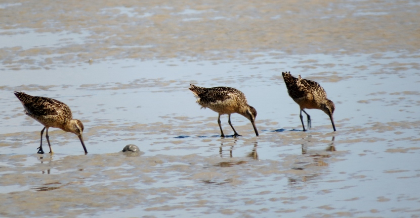 Sandpipers. Which is which? There are sandpipers everywhere around me on Bird Shoal, an uninhabited island across from town. I focus my camera on photographing one small enchanting bird that’s darting across the sand right in front of me. While out in the field, I snap lots of photographs. Now I need to attach a name to each bird. With sandpipers, that can be a challenge. Ask any experienced birder. It’s tough to distinguish the subtle differences between species. Small and medium sizes Flock of sandpipers Different species Although the variety of sandpipers and plovers shifts from season to season, there are at least three year-round residents: Willets, Sanderlings, and Piping Plovers. Many other species visit only during the fall or winter months, wearing their grayish non-breeding plumage, like these … Ruddy Turnstone Black-bellied Plover Killdeer Semi-palmated Sandpiper Semi-palmated Sandpiper Sanderling Killdeer Semi-palmated Sandpiper Black-bellied Plover Willet Willet Whimbrel Greater Yellowlegs Short-billed Dowitcher Greater Yellowlegs Marbled Godwit Short-billed Dowitcher Short-billed Dowitcher During the spring and summer months, the population of sandpipers and plovers changes, adding several other species. The birds are in full breeding plumage, which is more distinctly spotted or streaked. Long-billed Dowitcher Long-billed Dowitcher Willet Ruddy Turnstone (with calico back) Long-billed Dowitcher Least Sandpiper Least Sandpiper Semi-palmated Plover Black-bellied Plover Black-bellied Plover Long-billed Dowitcher Dunlin Sanderling Ruddy Turnstone Dunlin On a summer visit, I had the good fortune to encounter some plover chicks and juveniles… Piping Plover Chick Piping Plover Juvenile Wilson’s Plover Juvenile Semi-palmated Plover Juvenile Here are related bird posts to visit: Waterfront Gulls >>Winter Loons and Mergansers >> Please follow and like: Share this: Share on Facebook (Opens in new window) Facebook Share on X (Opens in new window) X Like this:Like Loading... Post navigation Birds Perched on GravestonesEncountering Young Green Herons
