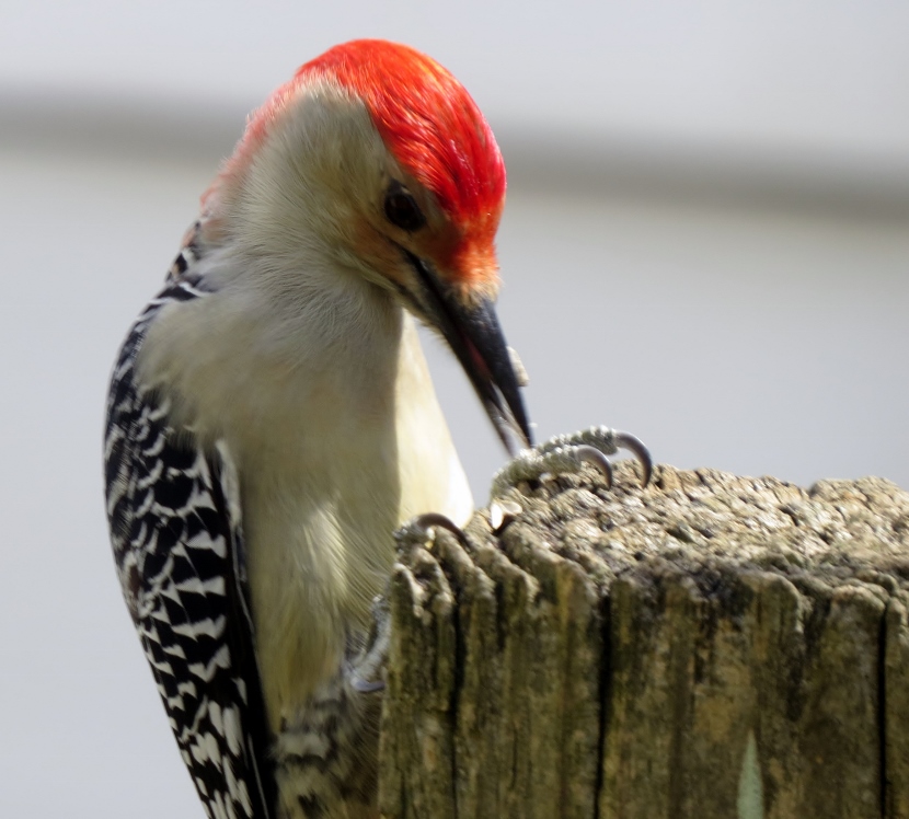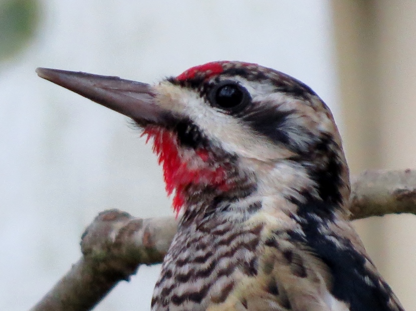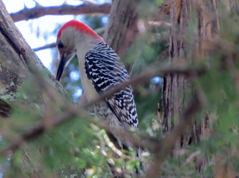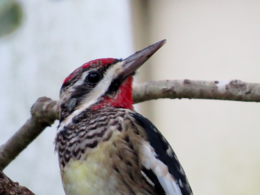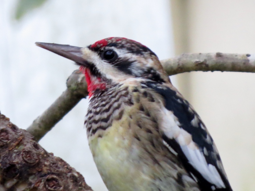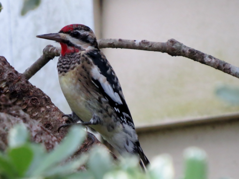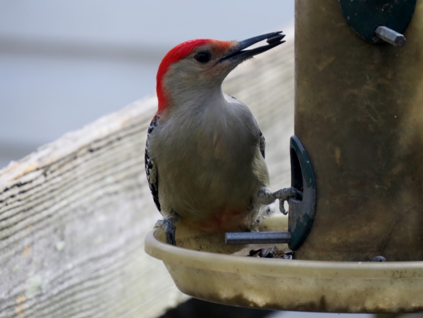 Two Woodpeckers and a Sapsucker Imagine my surprise, when I looked out the kitchen windowto see a woodpecker eating at the bird feeder. It was a Red-bellied Woodpecker, Melanerpes carolinus. A few days later, I saw what I assumed was the same individual at a neighbor’s bird feeder. It’s definitely the male of the species He then poked around for insects in the bark of a nearby tree. The Downy Woodpecker (Picoides pubescens) sometimes visits my feeders. In winter my backyard is home to another variety of woodpecker, the Yellow-bellied Sapsucker (Sphyrapicus varius). Woodpeckers are not the only birds that provide a burst of red color … Northern Cardinal Pair of House Finches Male House Finch Male Cardinal “Look at the trees, look at the birds, look at the clouds, look at the stars… and if you have eyes you will be able to see that the whole existence is joyful.” Osho Happy Birding! Here are related bird posts to visit: Feathered Graveyard Visitors >>Fence Sitters >>Winter Loons and Mergansers >> Please follow and like: Share this: Share on Facebook (Opens in new window) Facebook Share on X (Opens in new window) X Like this:Like Loading... Post navigation Ducks on a California LakeWild Turkeys