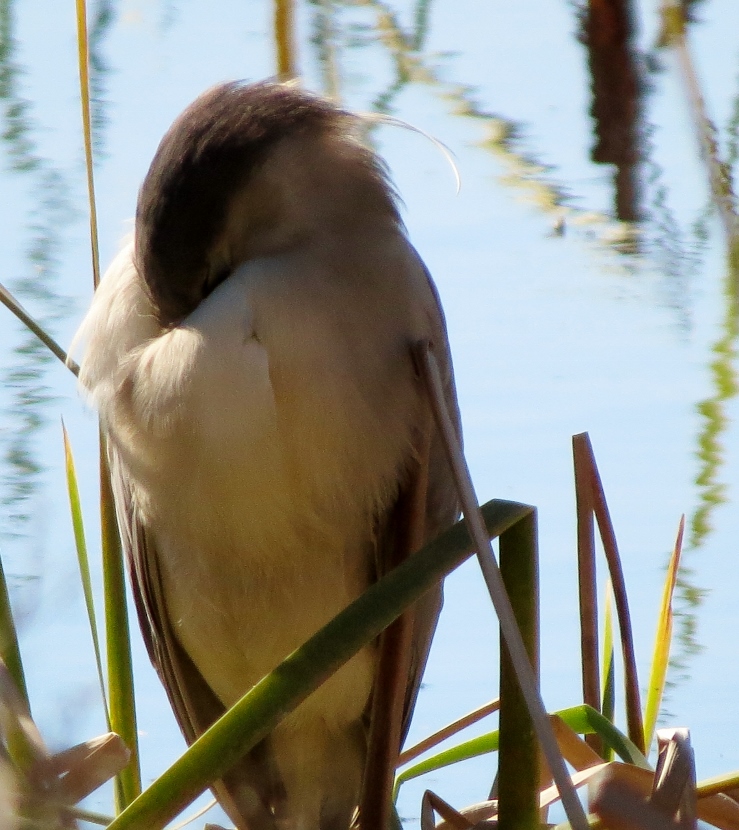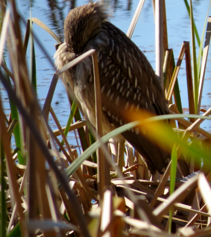 Although they seem to have no neck, night herons actually have long necks just like other herons, but they keep them folded up and hidden away in their feathers.