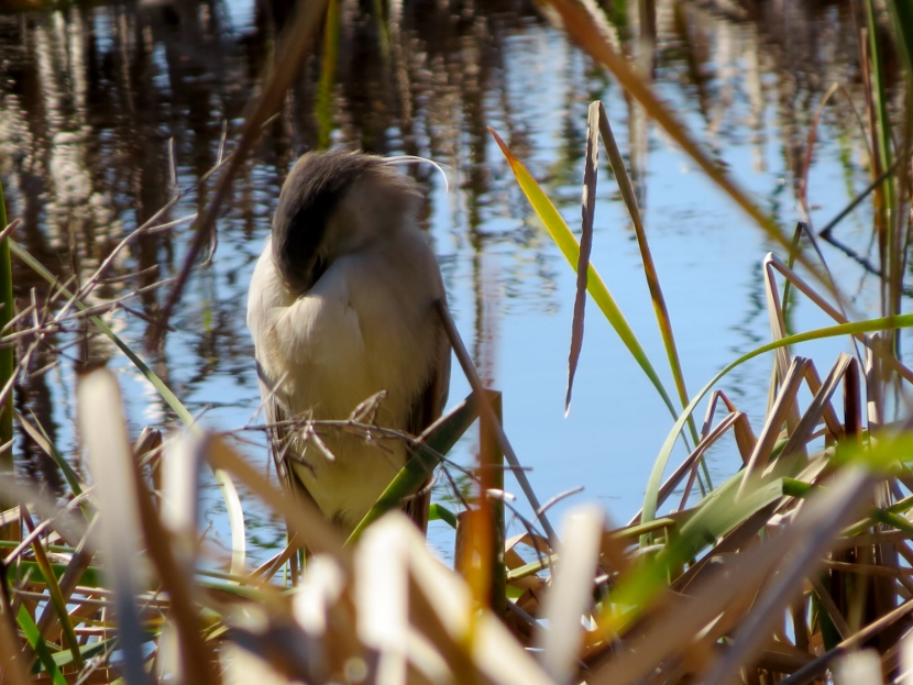 About the size of a seagull, there’s no mistaking a night heron’s profile. Chunky and hunchbacked. Remaining motionless, the bird I’m watching is apparently unmoved by me or the other foot traffic on the boardwalk. The ghostly form seems to be asleep until all of a sudden it STRIKES, diving into the blackened water below. These nocturnal birds snooze during the day somewhere in the wetlands, nestled into a tree or dense brush.