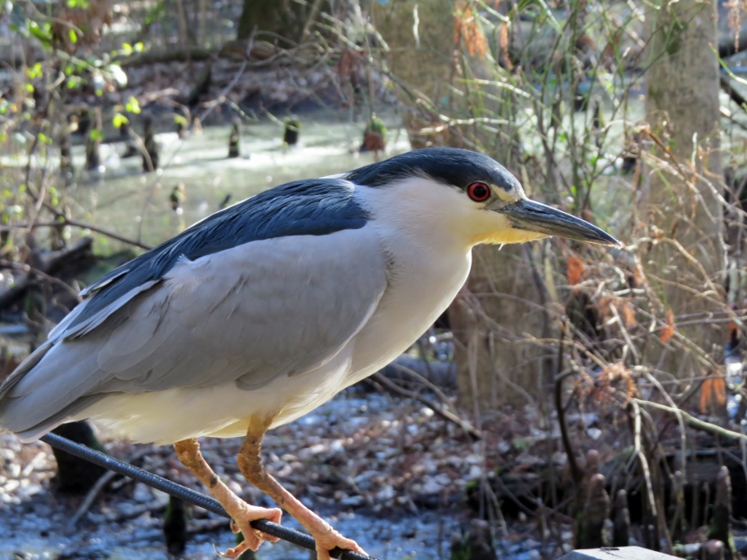 In the light of day, you can get a good look at the plumage of the night heron, if you can find one. I took these close-up shots at Brookgreen Gardens in South Carolina.