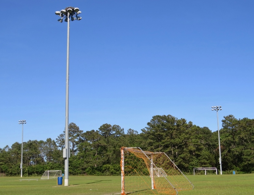 Isn’t it remarkable that human use of the park doesn’t seem to bother the birds? They must be able to tolerate noisy soccer games, not to mention the presence of cars coming and going, as well as kids, dog-walkers and joggers. Imagine if those powerful lights come on.