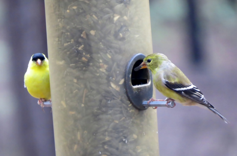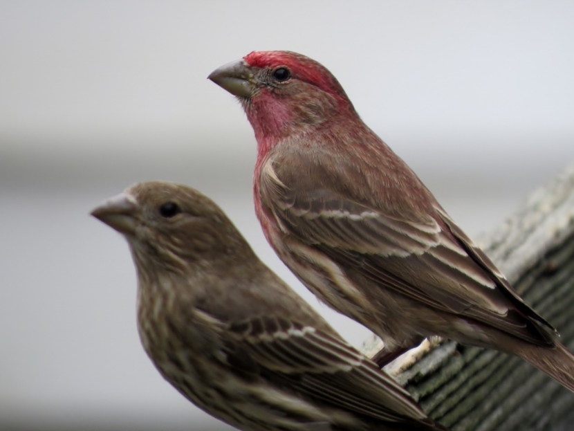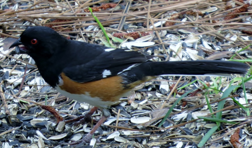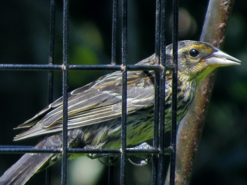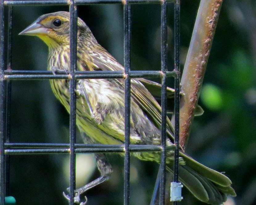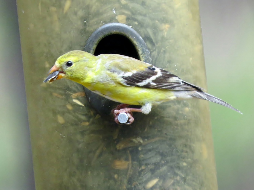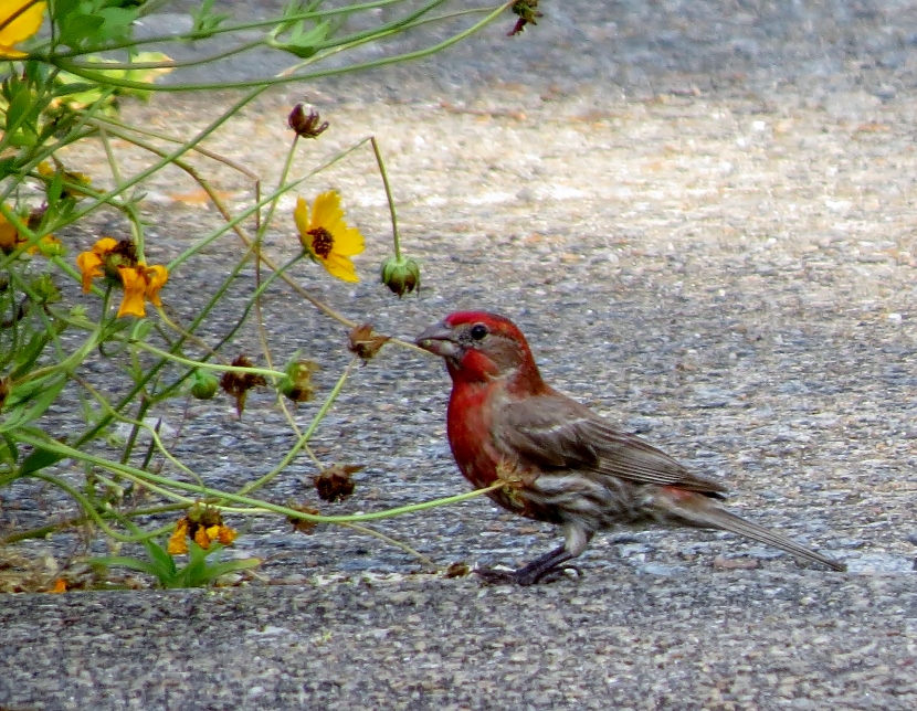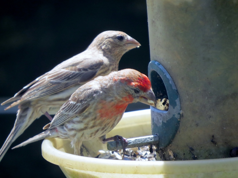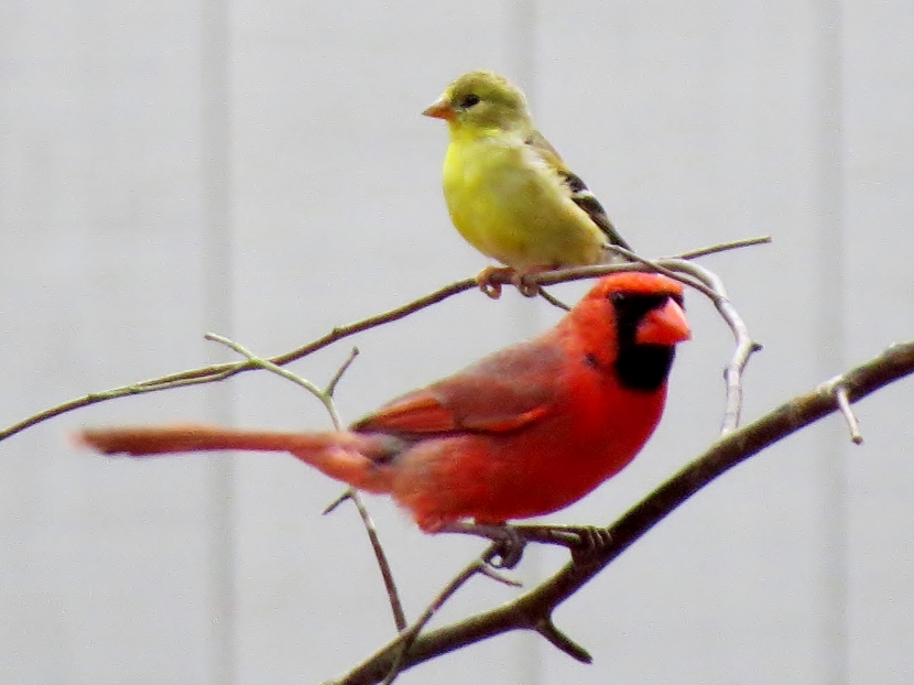 Summer Finches Enjoy this rainbow of colors among the birds of Fringillidae, the finch family … Painted Bunting Male Cardinal Female Goldfinch White-throated Sparrow Bachman’s Sparrow Male House Sparrow Male Goldfinch Female Cardinal House Finch Pair Rufous-sided Towhee Can you detect what these different species have in common? It’s the cone-shaped bill, adapted for eating seeds. My favorite finch, a summer resident of Eastern North Carolina, is the American Goldfinch (Spinus tristis). Here’s the male bird in all his glory … The female is also a pretty bird, but a bit dull in comparison to the male… Although they are related, look at the difference in size between the American Goldfinch and the Northern Cardinal … Another of the larger members of the finch family is the Rufous-sided Towhee, (Pipilo erythrophthalmus) … Here’s a Pine Siskin (Spinus pinus) at a bird feeder. Note that the bill of this bird is more slender than that of other finches. Much more abundant, the House Finch (Haemorhous mexicanus), is a gregarious, year-round resident. Comfortable around human structures, this bird is a regular at bird feeders. As the name indicates, the House Finch nests on or near buildings. Male House Finch Female House Finch Did you notice that some male House Finches seem much redder than others? That redness comes from eating more red-colored food. It is said that the females prefer to mate with the reddest male they can find. Here’s the reddest male I’ve encountered so far… Here’s a juvenile male, developing his red plumage… Special Relatives At the local PetSmart store, I encountered some exotic finches. These caged birds are not true finches, but are classified in the Estrildidae family, native to Australasia. Society Finch Zebra Finch Society Finch Goldfinches Sometimes goldfinches one by one will drop From low hung branches; little space they stop; But sip, and twitter, and their feathers sleek; Then off at once, as in a wanton freak: Or perhaps, to show their black, and golden wings Pausing upon their yellow flutterings. -John Keats Read more about another member of the finch family: Is that a Purple Finch? >>Painted Bunting >> Please follow and like: Share this: Share on Facebook (Opens in new window) Facebook Share on X (Opens in new window) X Like this:Like Loading... Post navigation Yellow-billed Cuckoo2019 Fledglings