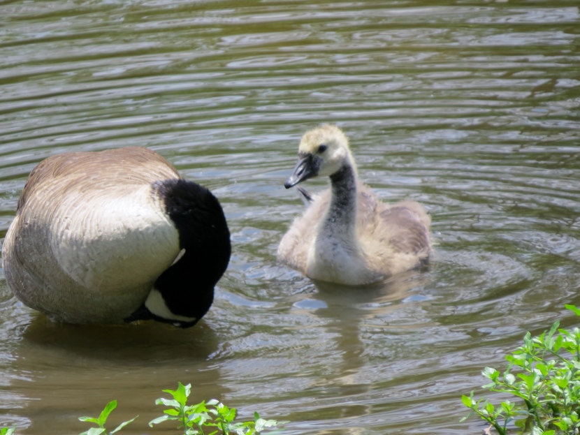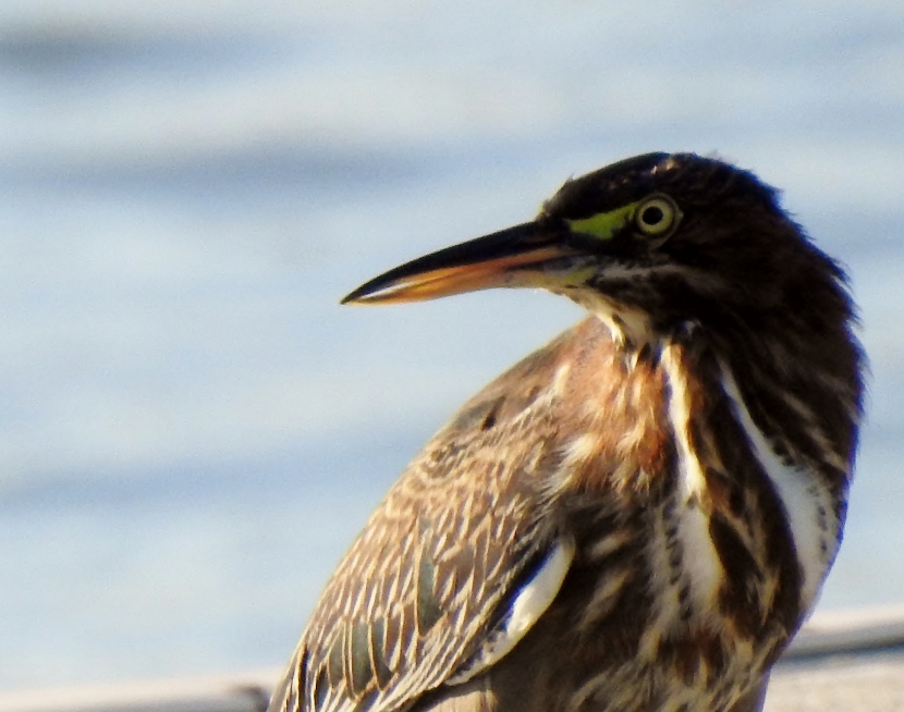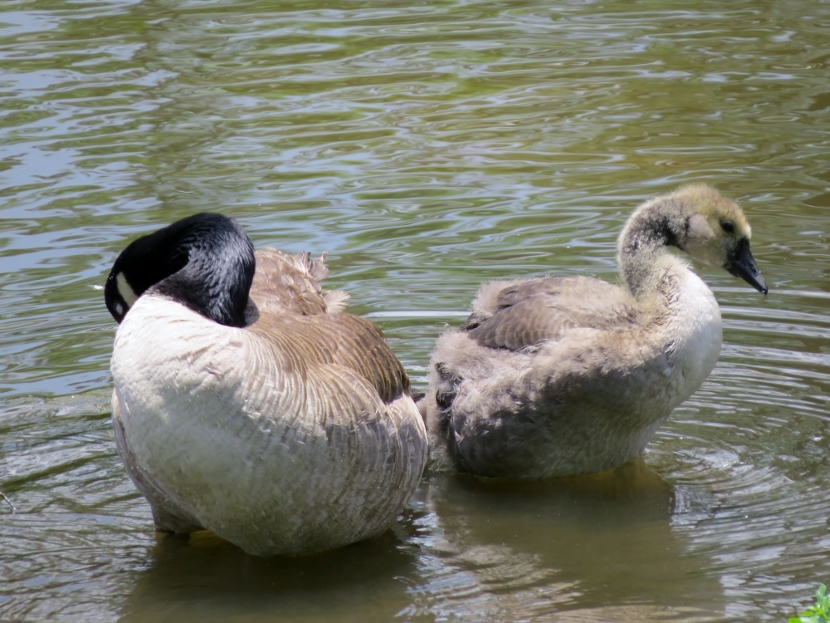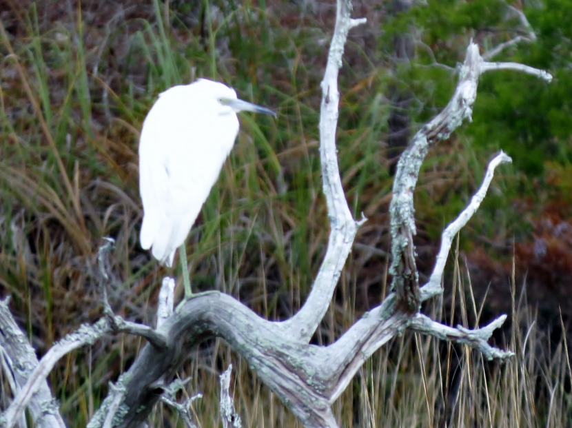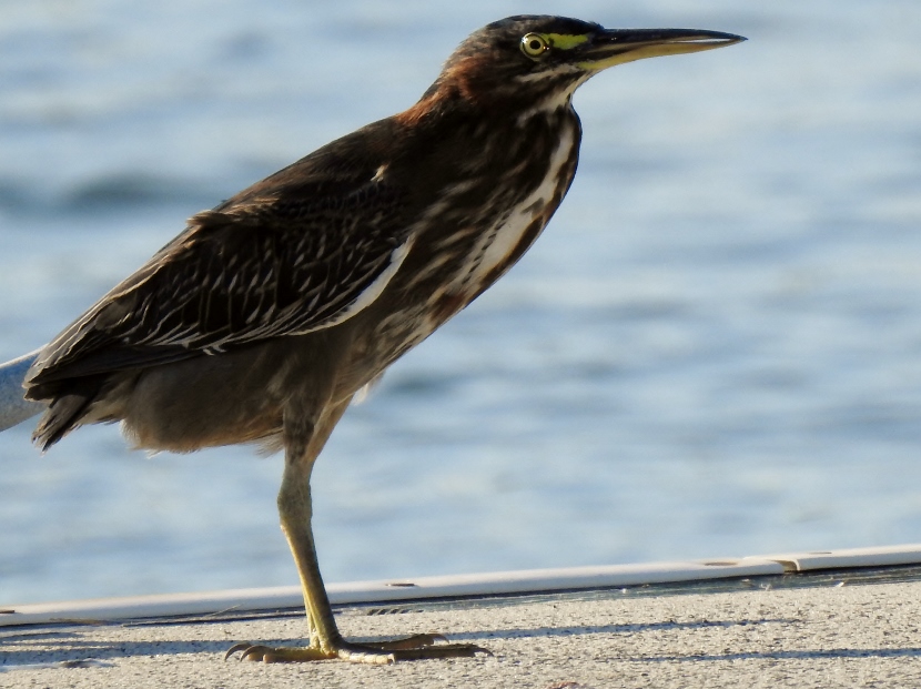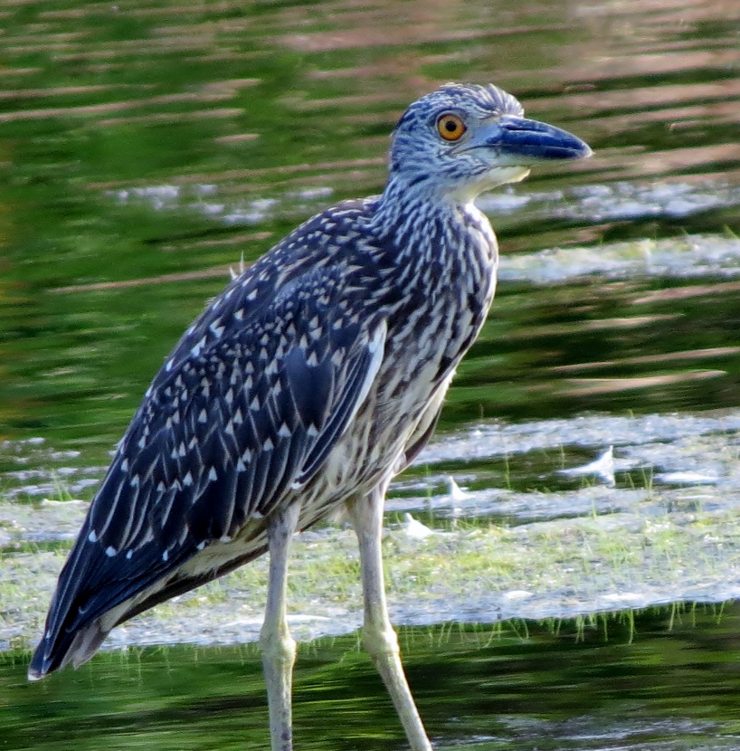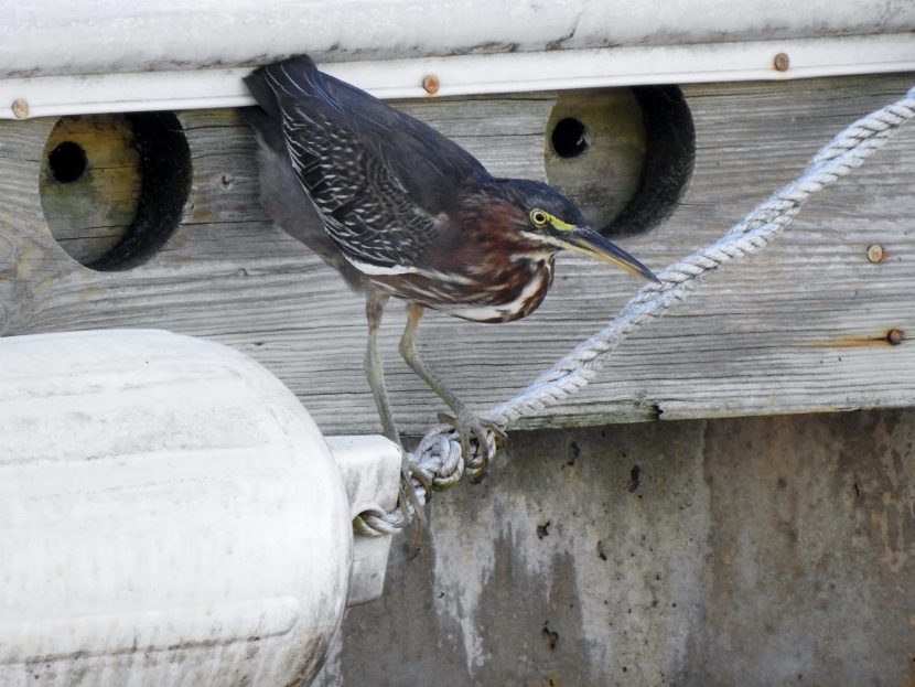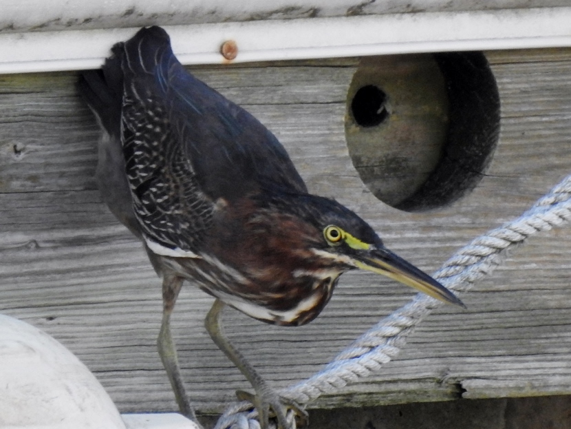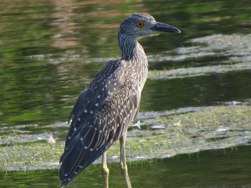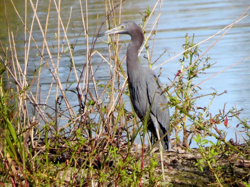 Fledglings of Estuary Birds White Ibis adult (right) and juvenile. Fledgling ibises (left) with mottled feathers. Fledgling White Ibis Young wading birds generally stay in or near their nests longer than small land birds (see 2019 Fledglings). The fledgling White Ibis, in the above photographs, remains in the nest for three weeks after hatching. After another week or two, it’s able to make short flights and is capable of sustained flight after six weeks. Here’s a fledged Green Heron, fishing alone from a dock, probably about two months old. One day in August, among a flock of ibises, I spotted other splotchy-colored fledglings — two immature Yellow-crowned Night Herons… Below are the two birds side by side. The bird on the left has its neck stretched to full length, while the one on the right is scrunched down and seated on the ground, feathers wet and spiky. This next bird, a Snowy Egret, resembles the adult, having white feathers. Its legs are greenish, rather than black like the adult… It takes about a year for immature wading birds to attain their adult plumage. In the case of the Little Blue Heron, the transition leaves the young bird with a mottled patchwork of blue and white feathers… Immature Little Blue Heron Here’s the adult plumage for comparison… Little Blue Heron Fledglings of another common estuary bird, the Canada Goose, start following their parents away from the nest only one or two days after hatching, beginning to feed themselves immediately. The family remains close together for about two months, until the young birds begin to fly. Here’s a fuzzy young gosling with its parent… A bird does not change its feathers because the weather is bad. Nigerian saying Here are some other of my posts about young birds… 2019 Fledglings >>Great-horned Owl Nestlings >>2018 “Young’uns” >> Please follow and like: Share this: Share on Facebook (Opens in new window) Facebook Share on X (Opens in new window) X Like this:Like Loading... Post navigation 2019 FledglingsA Killdeer Family