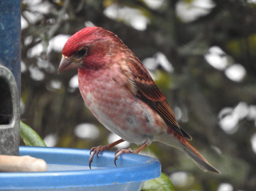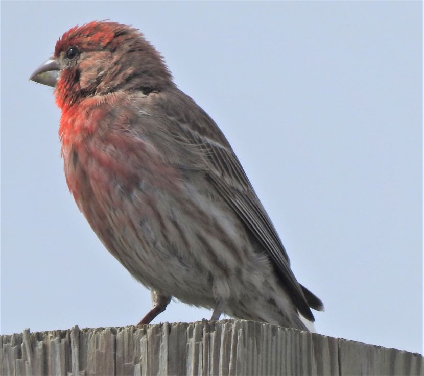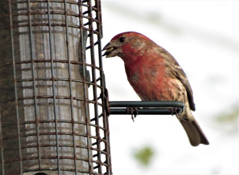 Recently, I noticed a feeding male that looked unusually red during the winter months. House Finches that are year-round residents here don’t normally turn bright red until it’s spring. Could this be a different species of finch?