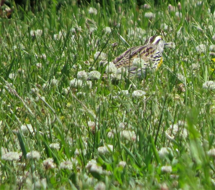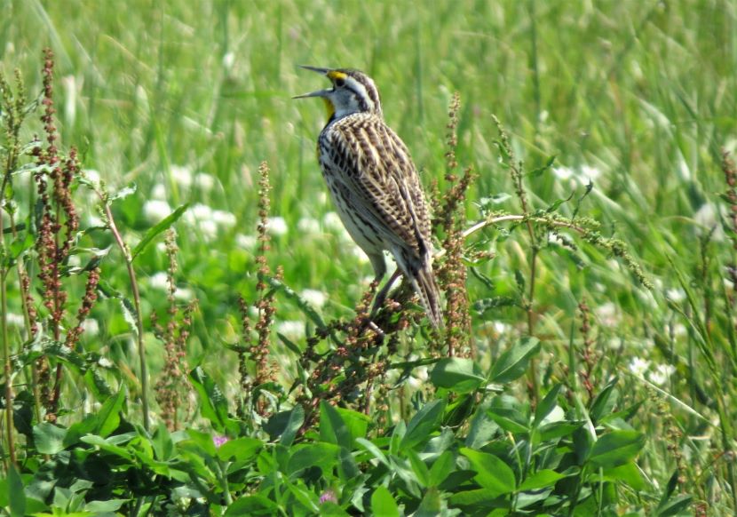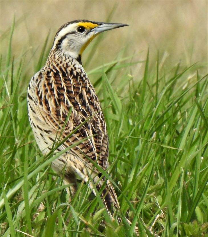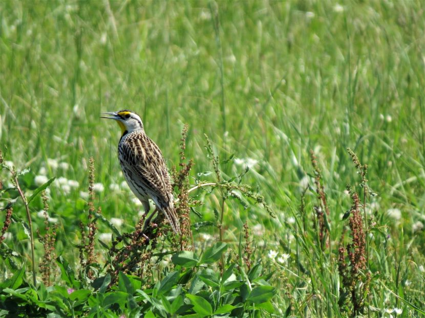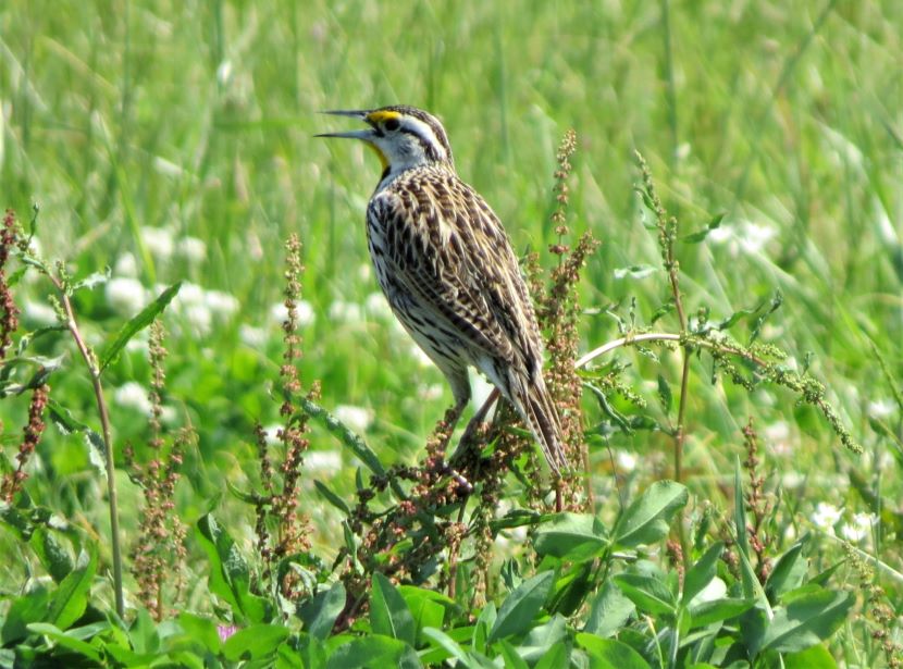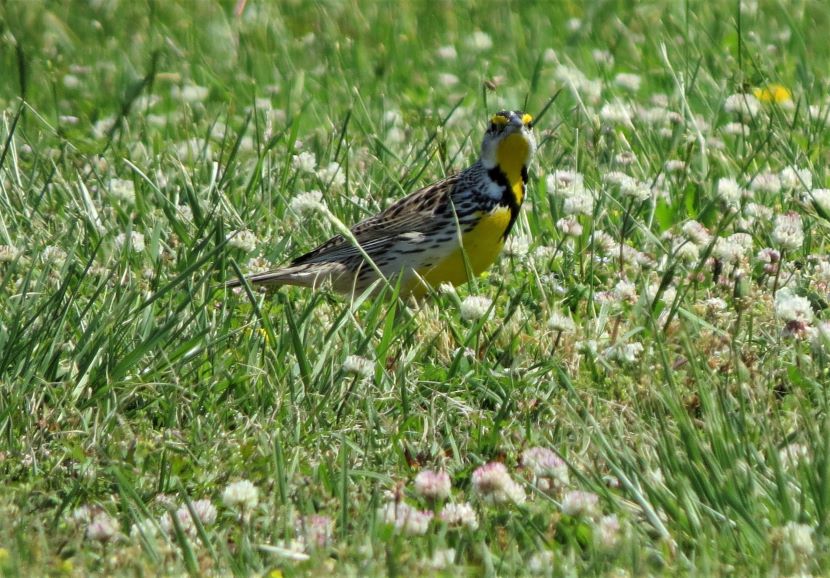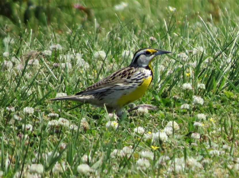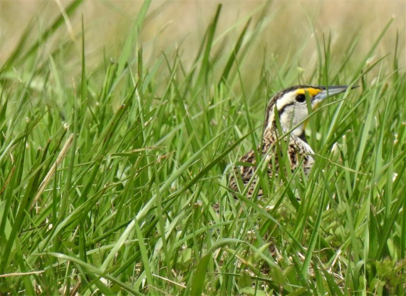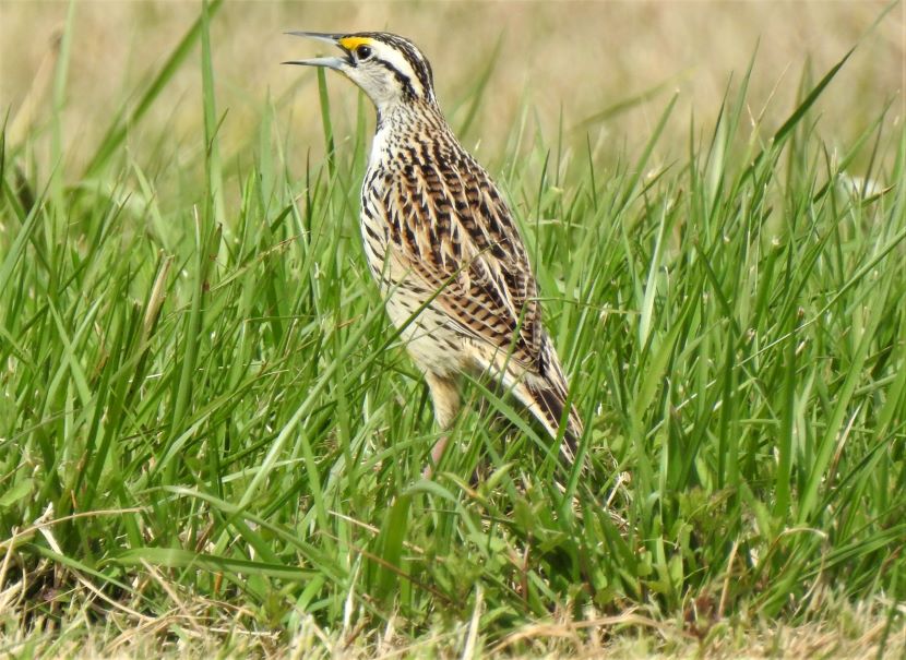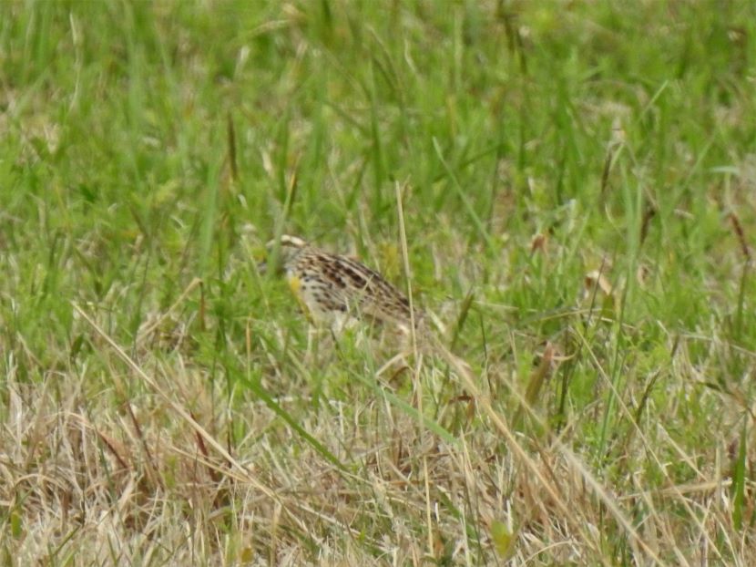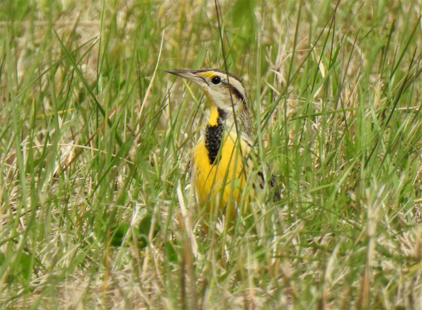 The Elusive Meadowlark Although it is a year-round resident in coastal North Carolina, the Eastern Meadowlark (Sturnella magna) has eluded my camera for years. These are shy birds, mostly hiding behind the tall grasses of pastures and rural fields, where they are well camouflaged. When disturbed, these birds quickly fly away. Determined to photograph one, I started stalking around potential locations, seeking grassy places where they might be feeding. I looked near the margins of the local airport, around the golf club, and within various unmowed parcels of land (such as the one pictured below) on the outskirts of civilization. Then totally by accident one day, I stumbled upon this sign for “Meadowlark Apartments.” Sure enough, in a grassy field adjacent to this apartment building, I encountered the namesake bird. My patience had paid off and I managed to get a few pictures of the Eastern Meadowlark in its natural habitat. That’s how the Eastern Meadowlark looks when viewed from behind. Turning to reveal the front view, the vibrant yellow and black chest is always a breathtaking sight… Eastern Meadowlark in breeding plumage Moving through the grass, the meadowlark was probing for insects with its long, sharp bill. After pushing the closed bill into the ground, he would open his mandibles to disturb the dirt and expose grubs and worms before eating them. Climbing to a slightly elevated position, this male began singing. Maybe he was establishing his territory here, as the breeding season was already underway. I have read that the male Eastern Meadowlark typically has two or even three mates at a time. Notice how he seems to be tilting his bill upward as he sings, exposing his bright yellow breast. Maybe he’s showing off to attract a female. The Eastern Meadowlark builds its nest on the ground, often in a shallow depression and hidden by dense vegetation. Glancing around the flat, grassy fields, most of the land looked vulnerable to a lawnmower. A possibility was perhaps locating a nest under some adjoining shrubs … Although they were once called “Meadow Starlings”, Meadowlarks are not related to European Starlings at all. However, they do belong to the blackbird family (Icteridae). Here are a couple of local blackbirds that also forage in grasses… Boat-tailed Grackle Red-winged Blackbird Eastern Meadowlard Unfortunately, Eastern Meadowlarks are a species with declining population. This is due to the gradual disappearance of grasslands, thanks to development. For more photographs of birds like the Meadowlark, check these: Birds of Black >>Insect Eaters >>Steeple Sitters >>Birds Perched on Gravestones >> Please follow and like: Share this: Share on Facebook (Opens in new window) Facebook Share on X (Opens in new window) X Like this:Like Loading... Post navigation A Mother’s VigilHello, American Oystercatcher!