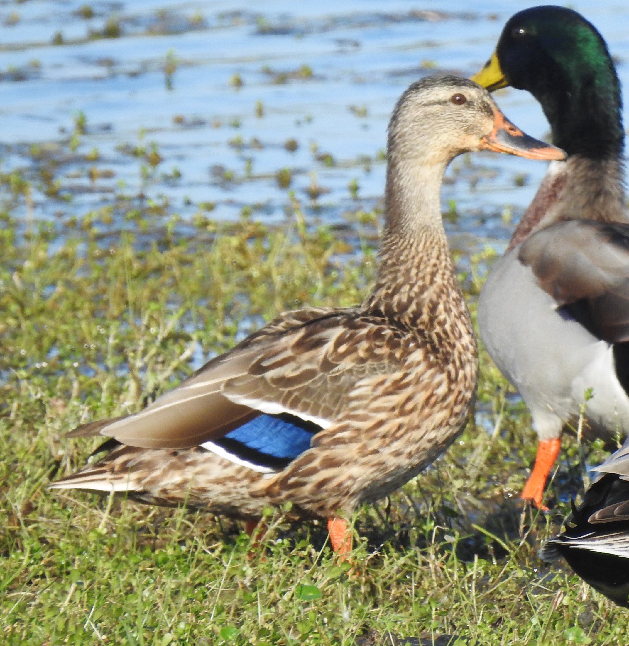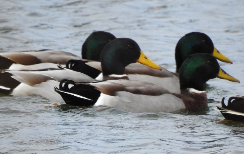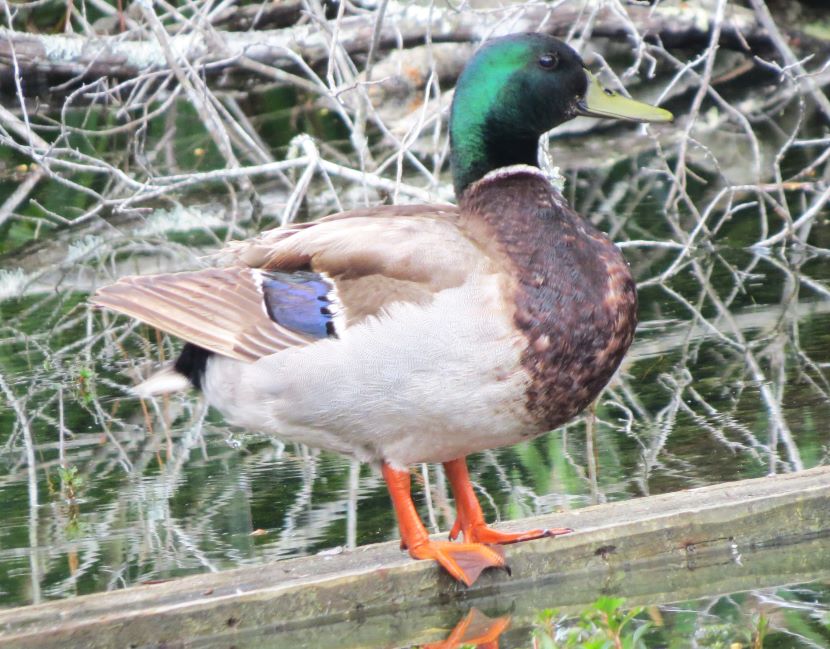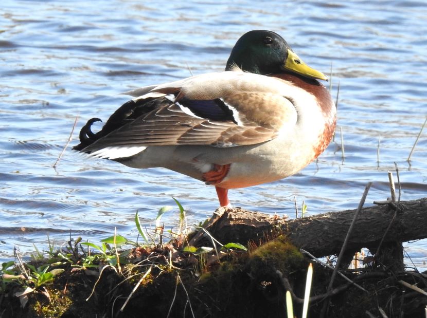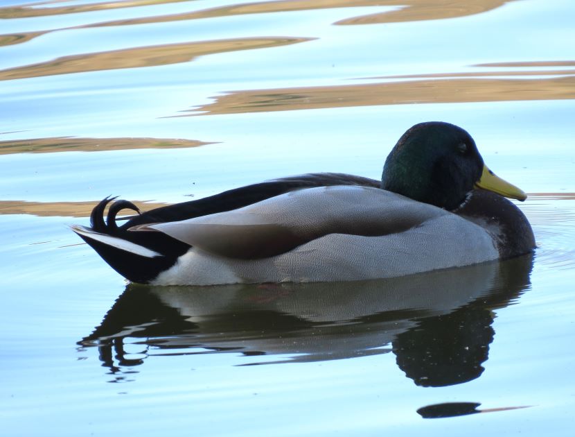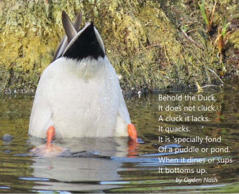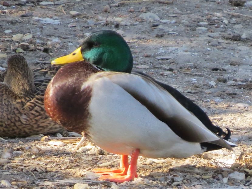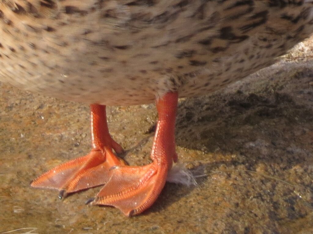 In Praise of the Mallard If it looks like a duck, swims like a duck, and quacks like a duck, then it probably is a duck. In fact, it’s likely to be a Mallard (Anas platyrhynchos). Mallards are common and abundant around freshwater ponds, making eastern North Carolina their home all year long. Sometimes we take them for granted — Oh, it’s just a mallard! But take a closer look. This is not just a plain old, run-of-the-mill “ordinary” bird! Check out this dazzling and awesome dude… This is a typical male or drake Mallard. Besides his striking coloration, he has another special feature — feathers that form tail curls… The hen, although mostly brown, has beautifully patterned plumage. Her coloring provides camouflage for her when tending her nest on the ground… Both sexes have a touch of blue color located on their wings, only visible when they step out of the water… A close-up of the Mallard drake’s iridescent green head shows the distinctive flattened bill characteristic of ducks. The black tip is a nice detail… Another special feature of ducks is their webbed feet (seen here on a Mallard hen)… Webbed feet leave distinctive tracks… Mallards, like other “dabbling” or puddle ducks, have a funny way of foraging for food in shallow water. Instead of diving underwater, they tip over like this and eat off the bottom… They eat on land too, but spend a lot of time sleeping on the grass in various positions… Here’s a drake who is emerging from a molt. He briefly lost his colorful feathers, but new ones are growing in… Mallards are extremely sociable ducks, and hang out together on ponds, like this group of drakes… Mallards are the ancestors of most domesticated ducks, so there is sometimes an attraction between a wild Mallard and an escaped Domestic duck. Breeding results in some odd hybrids… To see more duck photos… Puddle Ducks >> Diving Ducks >> Ducks on a California Lake >> Please follow and like: Share this: Share on Facebook (Opens in new window) Facebook Share on X (Opens in new window) X Like this:Like Loading... Post navigation 2023 Owl Family AlbumPuddle Ducks